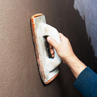 Поверх пенопласта наносится армирующий слой штукатурки для пенополистирола и минеральной ваты Styrobond DP толщиной 2-3 мм, для придания прочности в толщу штукатурки помещают стекловолоконную армирующую сетку и прячут ее с помощью шпателя так, чтобы сетка не была видна. После этого необходимо выждать 72 часа до полного высыхания штукатурной смеси. Время затвердевания 3 часа. |