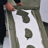 Поверх пенопласта наносится армирующий слой штукатурки для пенополистирола и минеральной ваты Styrobond DP толщиной 2-3 мм, для придания прочности в толщу штукатурки помещают стекловолоконную армирующую сетку и прячут ее с помощью шпателя так, чтобы сетка не была видна. После этого необходимо выждать 72 часа до полного высыхания штукатурной смеси. Время затвердевания 3 часа. |