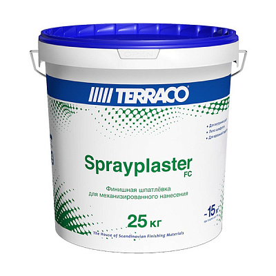 Готовая к применению тонкослойная шпатлевка белого цвета на акриловой основе для окончательной подготовки поверхности под окраску и нанесение любых декоративных покрытий. Sprayplaster FC является элементом системы шпатлевок Terraco Sprayplaster.